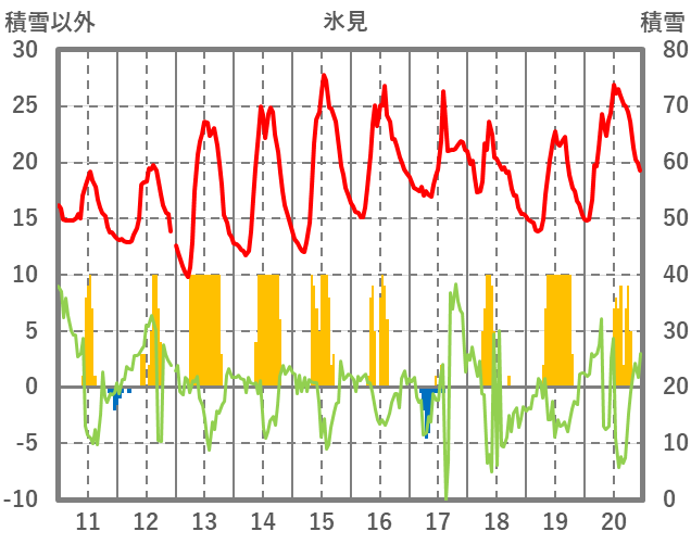 | 日 | 時 | 気温 | 降水 | 風向/風速 | 日照 | 積雪 | 降雪 |