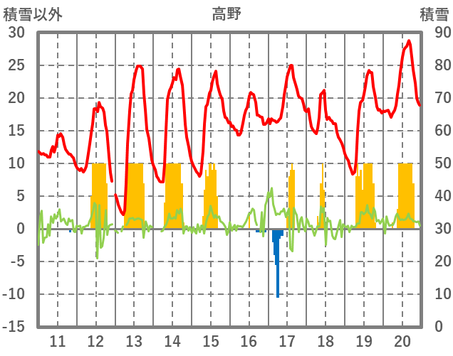 | 日 | 時 | 気温 | 降水 | 風向/風速 | 日照 | 積雪 | 降雪 |