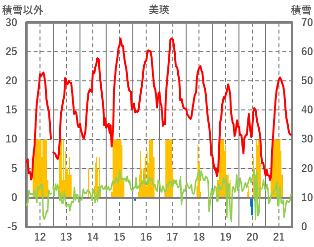 | 日 | 時 | 気温 | 降水 | 風向/風速 | 日照 | 積雪 | 降雪 |