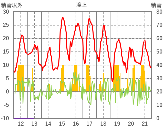 | 日 | 時 | 気温 | 降水 | 風向/風速 | 日照 | 積雪 | 降雪 |