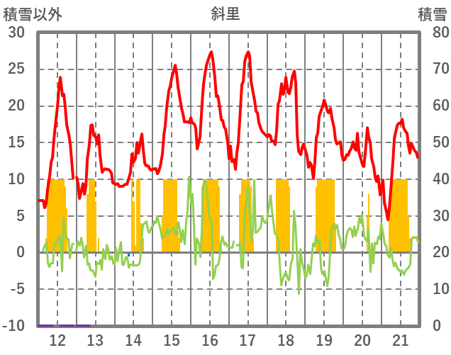 | 日 | 時 | 気温 | 降水 | 風向/風速 | 日照 | 積雪 | 降雪 |