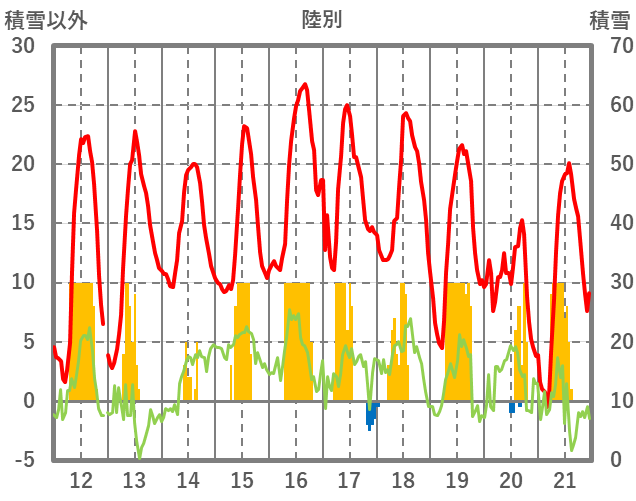 | 日 | 時 | 気温 | 降水 | 風向/風速 | 日照 | 積雪 | 降雪 |