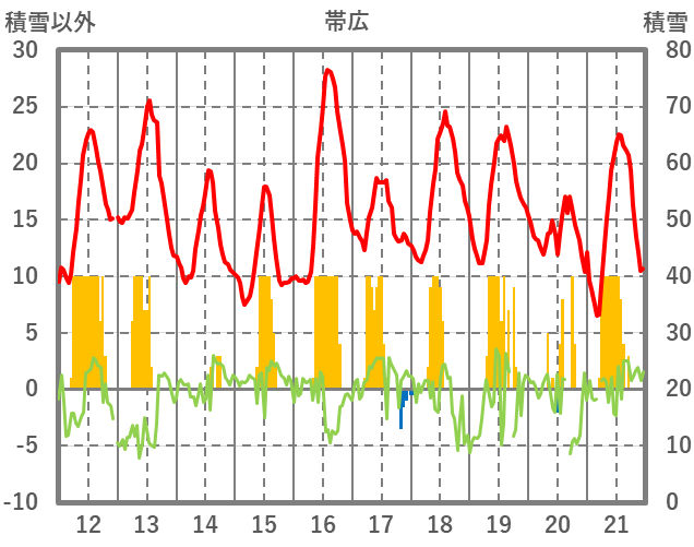| 日 | 時 | 気温 | 降水 | 風向/風速 | 日照 | 積雪 | 降雪 |