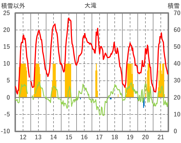 | 日 | 時 | 気温 | 降水 | 風向/風速 | 日照 | 積雪 | 降雪 |