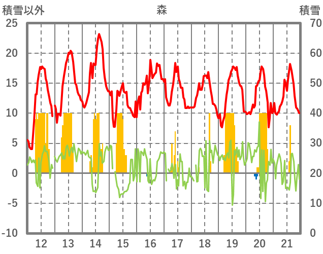 | 日 | 時 | 気温 | 降水 | 風向/風速 | 日照 | 積雪 | 降雪 |