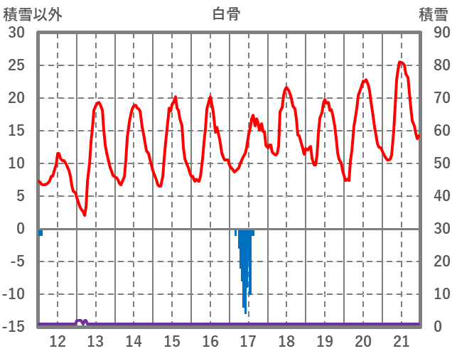 | 日 | 時 | 気温 | 降水 | 風向/風速 | 日照 | 積雪 | 降雪 |