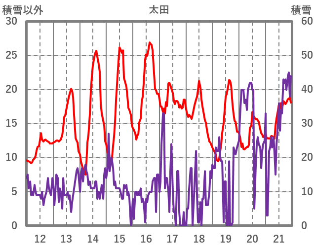 | 日 | 時 | 気温 | 降水 | 風向/風速 | 日照 | 積雪 | 降雪 |