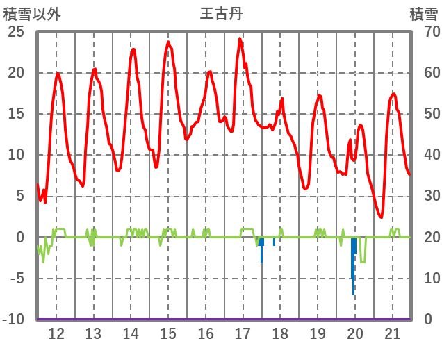 | 日 | 時 | 気温 | 降水 | 風向/風速 | 日照 | 積雪 | 降雪 |