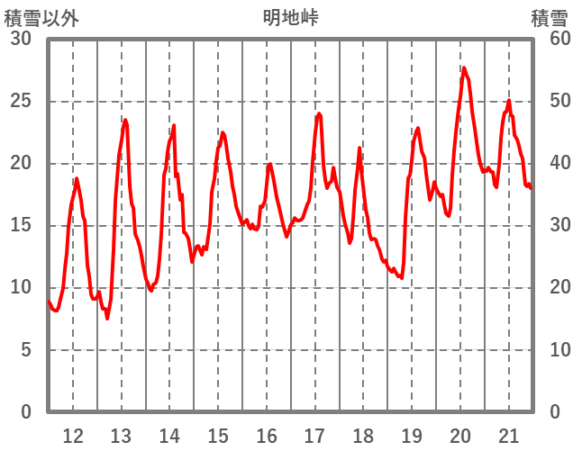 | 日 | 時 | 気温 | 降水 | 風向/風速 | 日照 | 積雪 | 降雪 |