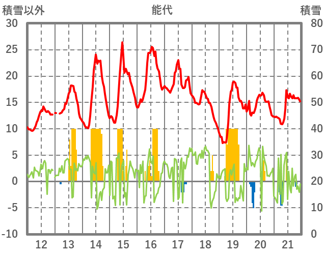 | 日 | 時 | 気温 | 降水 | 風向/風速 | 日照 | 積雪 | 降雪 |