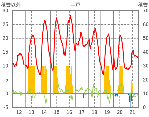 | 日 | 時 | 気温 | 降水 | 風向/風速 | 日照 | 積雪 | 降雪 |