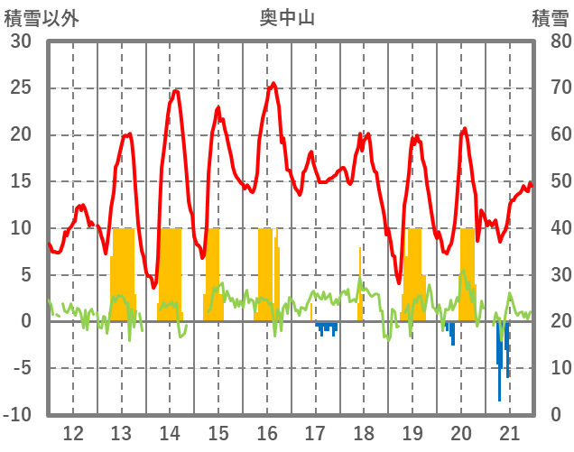 | 日 | 時 | 気温 | 降水 | 風向/風速 | 日照 | 積雪 | 降雪 |