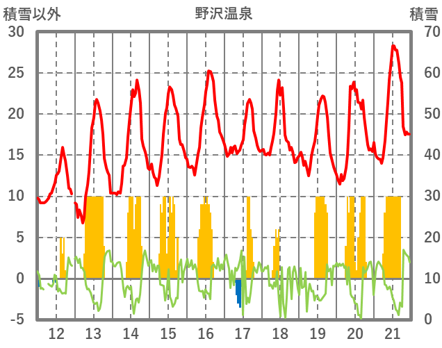 | 日 | 時 | 気温 | 降水 | 風向/風速 | 日照 | 積雪 | 降雪 |