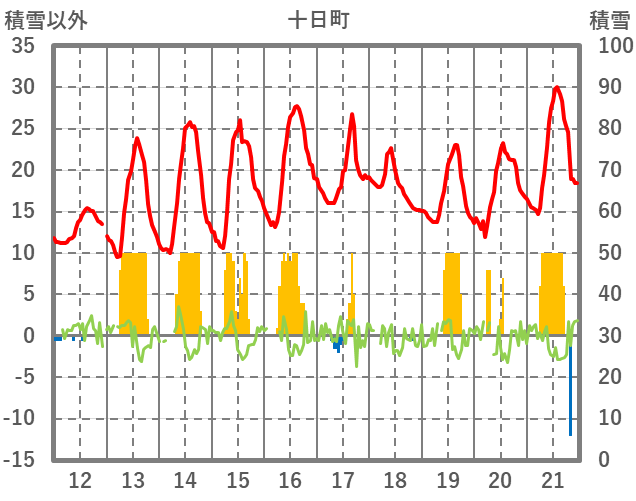 | 日 | 時 | 気温 | 降水 | 風向/風速 | 日照 | 積雪 | 降雪 |