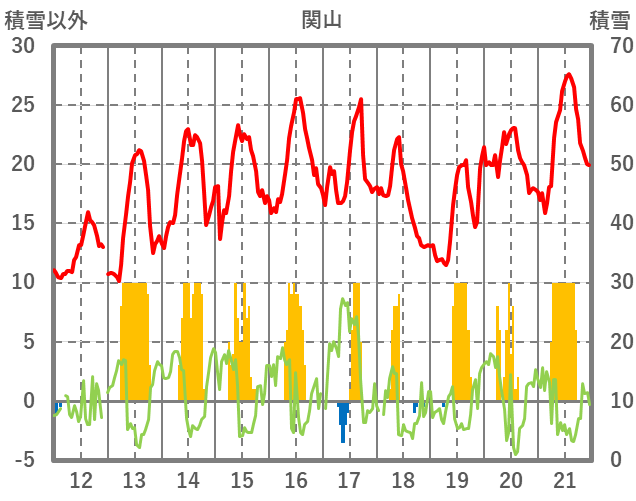 | 日 | 時 | 気温 | 降水 | 風向/風速 | 日照 | 積雪 | 降雪 |