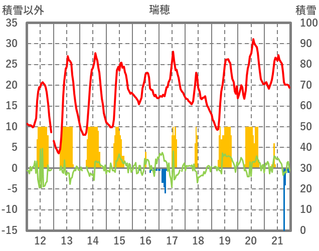 | 日 | 時 | 気温 | 降水 | 風向/風速 | 日照 | 積雪 | 降雪 |