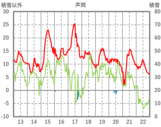 | 日 | 時 | 気温 | 降水 | 風向/風速 | 日照 | 積雪 | 降雪 |