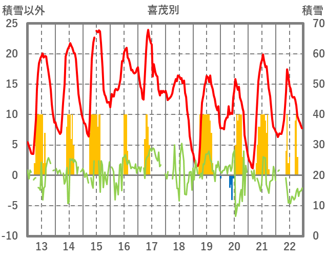 | 日 | 時 | 気温 | 降水 | 風向/風速 | 日照 | 積雪 | 降雪 |