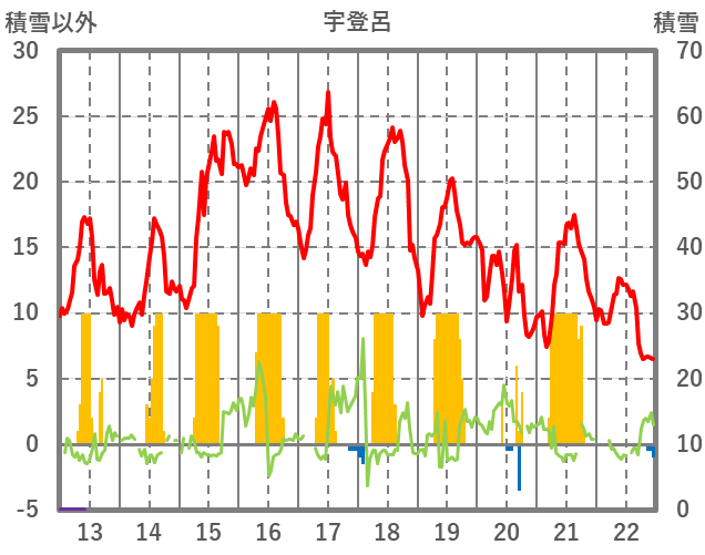| 日 | 時 | 気温 | 降水 | 風向/風速 | 日照 | 積雪 | 降雪 |