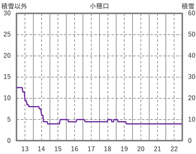 | 日 | 時 | 気温 | 降水 | 風向/風速 | 日照 | 積雪 | 降雪 |