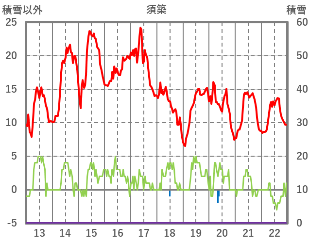 | 日 | 時 | 気温 | 降水 | 風向/風速 | 日照 | 積雪 | 降雪 |