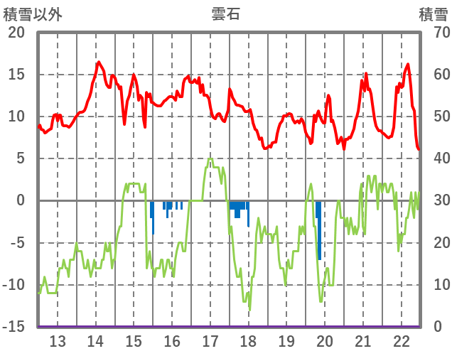 | 日 | 時 | 気温 | 降水 | 風向/風速 | 日照 | 積雪 | 降雪 |