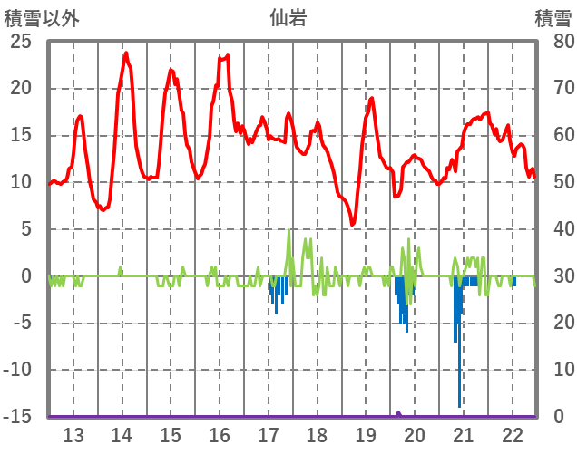 | 日 | 時 | 気温 | 降水 | 風向/風速 | 日照 | 積雪 | 降雪 |