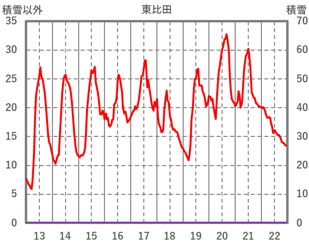 | 日 | 時 | 気温 | 降水 | 風向/風速 | 日照 | 積雪 | 降雪 |