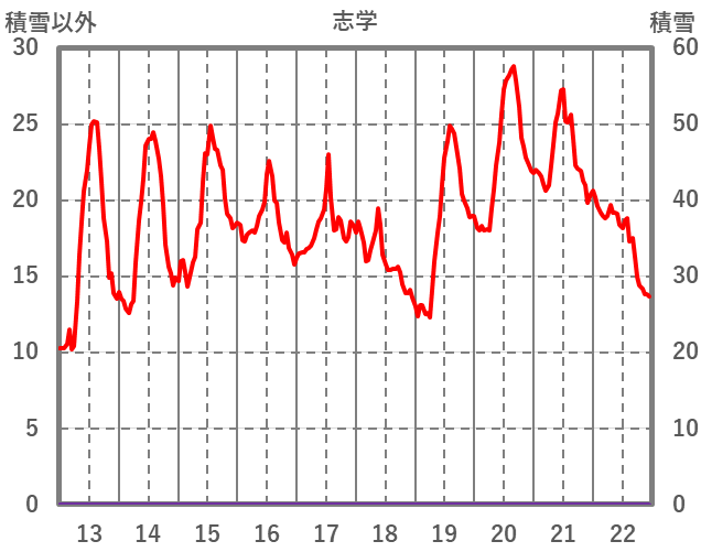 | 日 | 時 | 気温 | 降水 | 風向/風速 | 日照 | 積雪 | 降雪 |