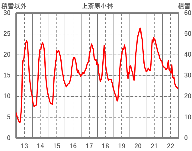 | 日 | 時 | 気温 | 降水 | 風向/風速 | 日照 | 積雪 | 降雪 |