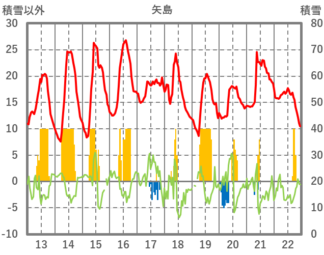 | 日 | 時 | 気温 | 降水 | 風向/風速 | 日照 | 積雪 | 降雪 |