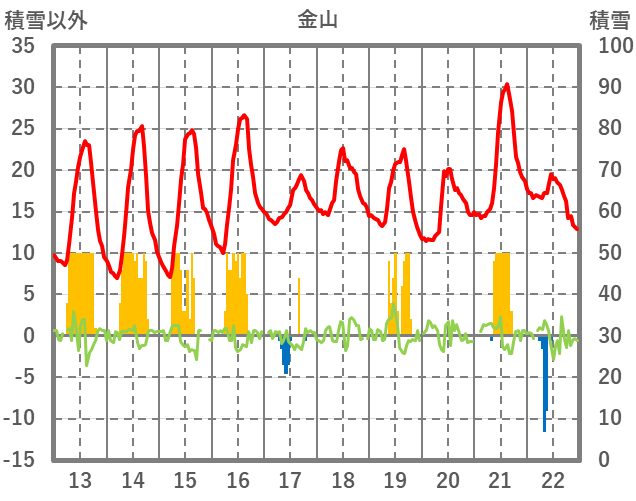 | 日 | 時 | 気温 | 降水 | 風向/風速 | 日照 | 積雪 | 降雪 |