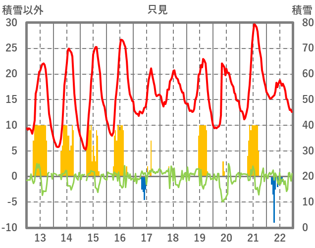 | 日 | 時 | 気温 | 降水 | 風向/風速 | 日照 | 積雪 | 降雪 |