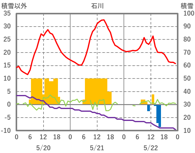 | 日 | 時 | 気温 | 降水 | 風向/風速 | 日照 | 積雪 | 降雪 |