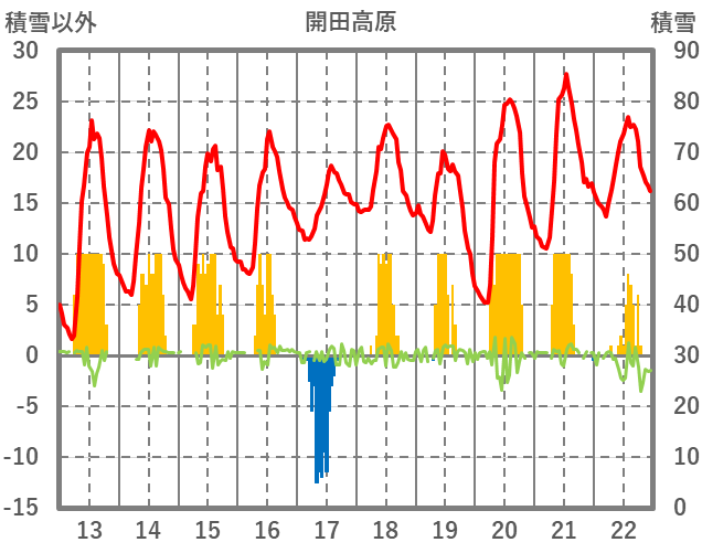 | 日 | 時 | 気温 | 降水 | 風向/風速 | 日照 | 積雪 | 降雪 |
