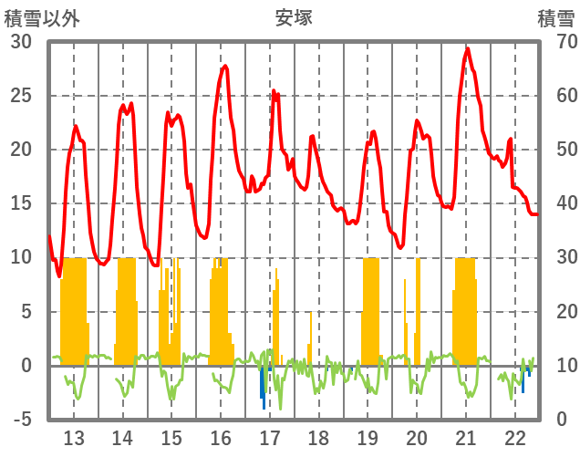 | 日 | 時 | 気温 | 降水 | 風向/風速 | 日照 | 積雪 | 降雪 |