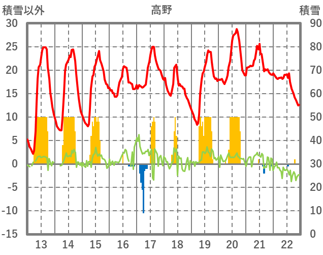| 日 | 時 | 気温 | 降水 | 風向/風速 | 日照 | 積雪 | 降雪 |