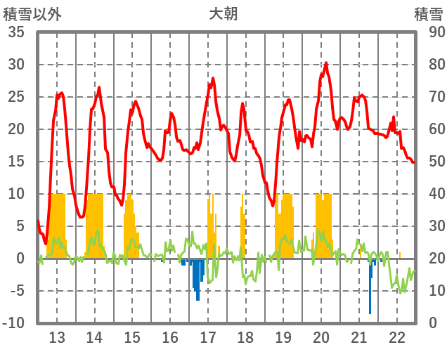 | 日 | 時 | 気温 | 降水 | 風向/風速 | 日照 | 積雪 | 降雪 |
