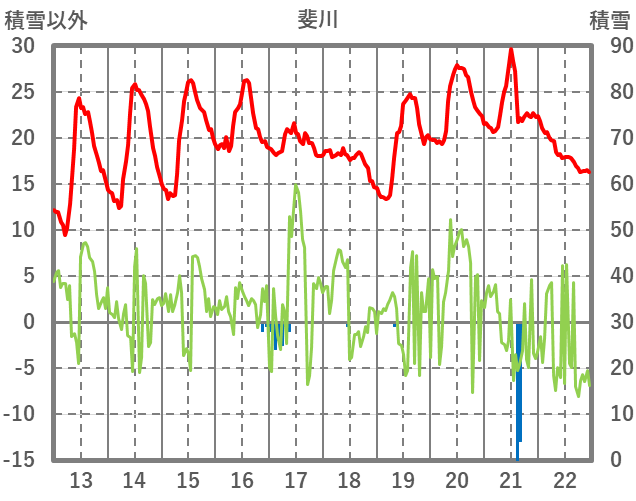 | 日 | 時 | 気温 | 降水 | 風向/風速 | 日照 | 積雪 | 降雪 |