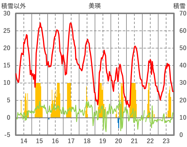 | 日 | 時 | 気温 | 降水 | 風向/風速 | 日照 | 積雪 | 降雪 |