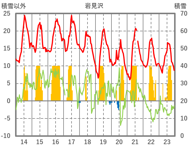 | 日 | 時 | 気温 | 降水 | 風向/風速 | 日照 | 積雪 | 降雪 |