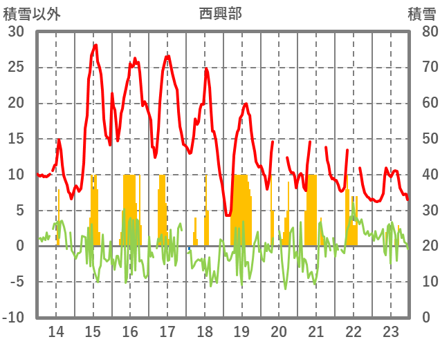 | 日 | 時 | 気温 | 降水 | 風向/風速 | 日照 | 積雪 | 降雪 |