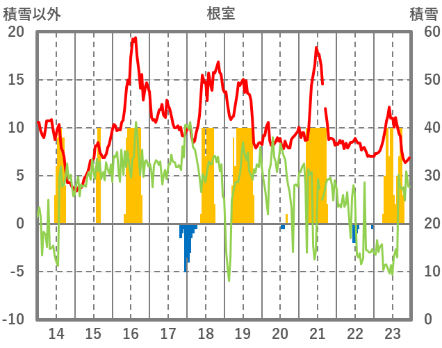 | 日 | 時 | 気温 | 降水 | 風向/風速 | 日照 | 積雪 | 降雪 |