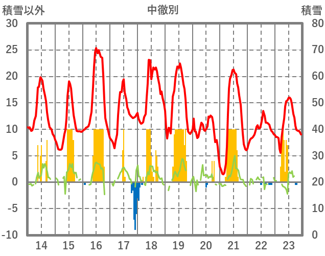 | 日 | 時 | 気温 | 降水 | 風向/風速 | 日照 | 積雪 | 降雪 |