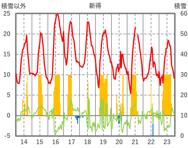 | 日 | 時 | 気温 | 降水 | 風向/風速 | 日照 | 積雪 | 降雪 |