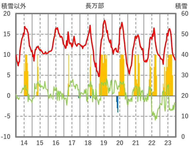 | 日 | 時 | 気温 | 降水 | 風向/風速 | 日照 | 積雪 | 降雪 |