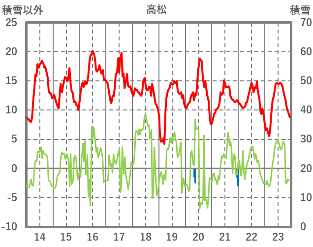 | 日 | 時 | 気温 | 降水 | 風向/風速 | 日照 | 積雪 | 降雪 |