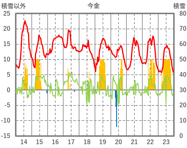 | 日 | 時 | 気温 | 降水 | 風向/風速 | 日照 | 積雪 | 降雪 |