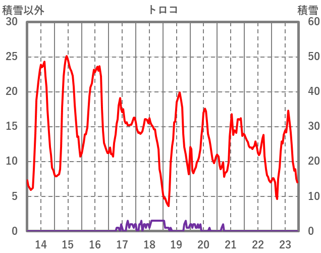 | 日 | 時 | 気温 | 降水 | 風向/風速 | 日照 | 積雪 | 降雪 |