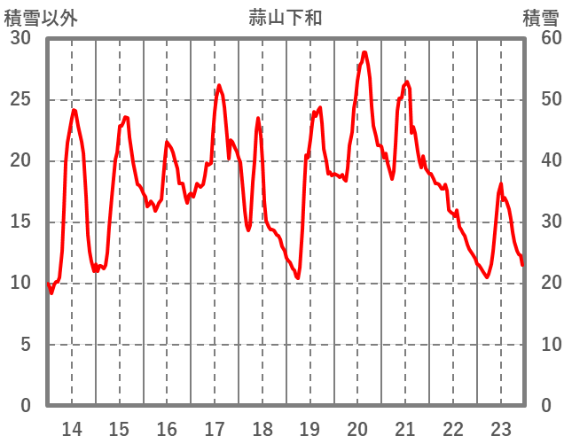 | 日 | 時 | 気温 | 降水 | 風向/風速 | 日照 | 積雪 | 降雪 |